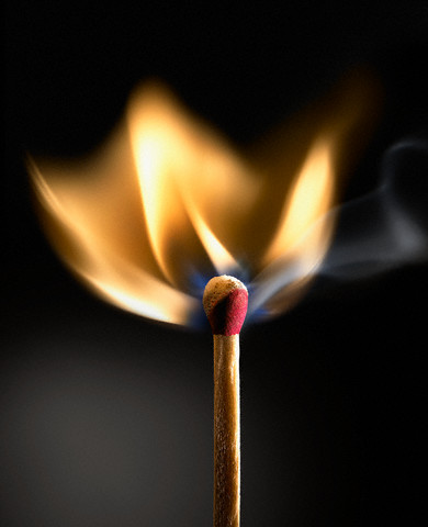 شکل (1) : شعله چوب کبریت که بیان کننده یک واکنش کمی لومینسانس میباشد